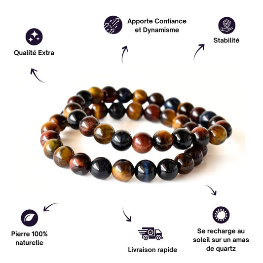 Bracelet Enfant en Perles Œil de Tigre, Œil de Taureau & Œil de Faucon